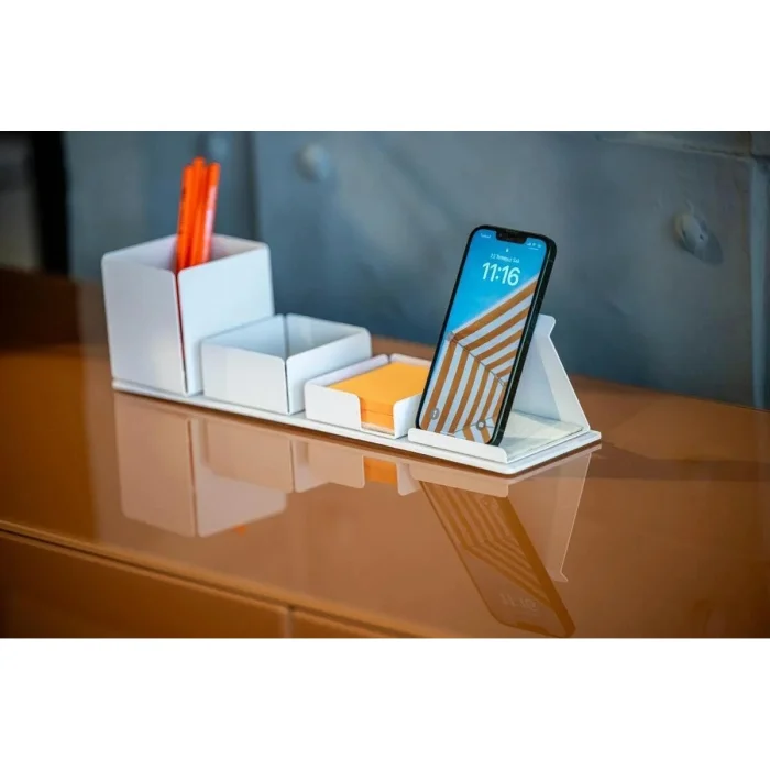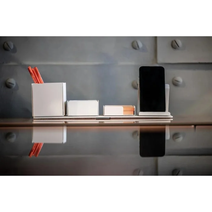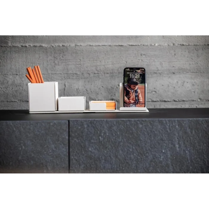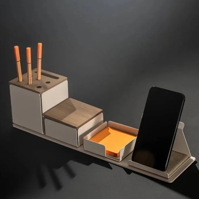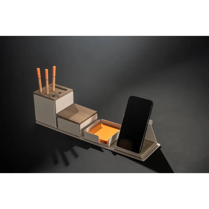 The set includes a zigzag pen holder, notepad, magnetic accessory box, and phone holder.