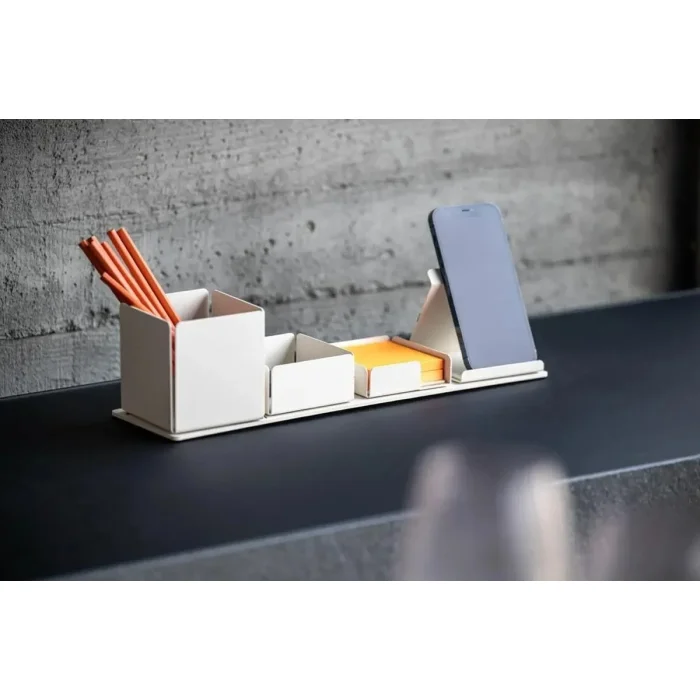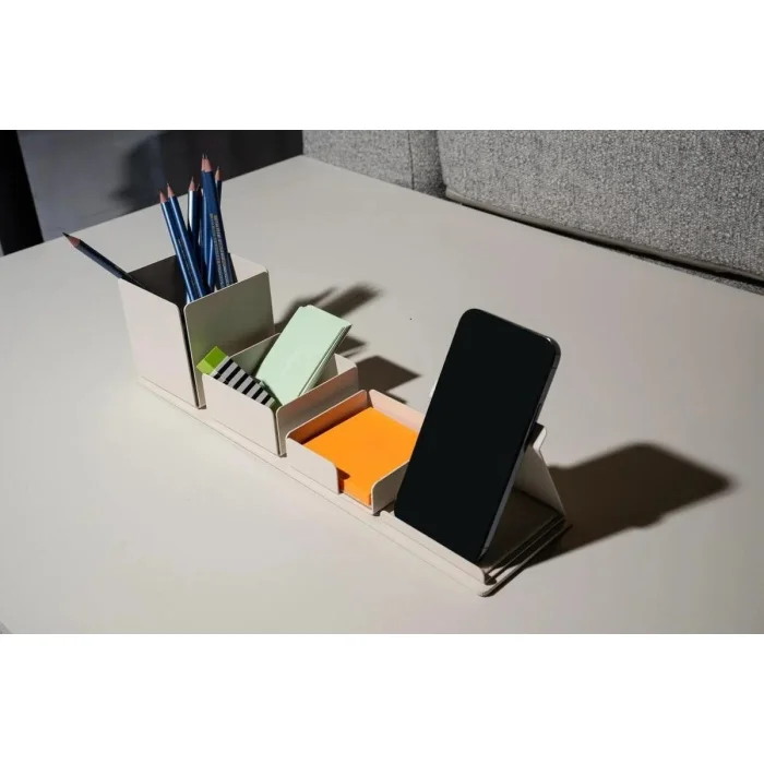 Product: Simple Aa Desk Set Cream Color | Pen Holder Accessory Note Box Phone Holder