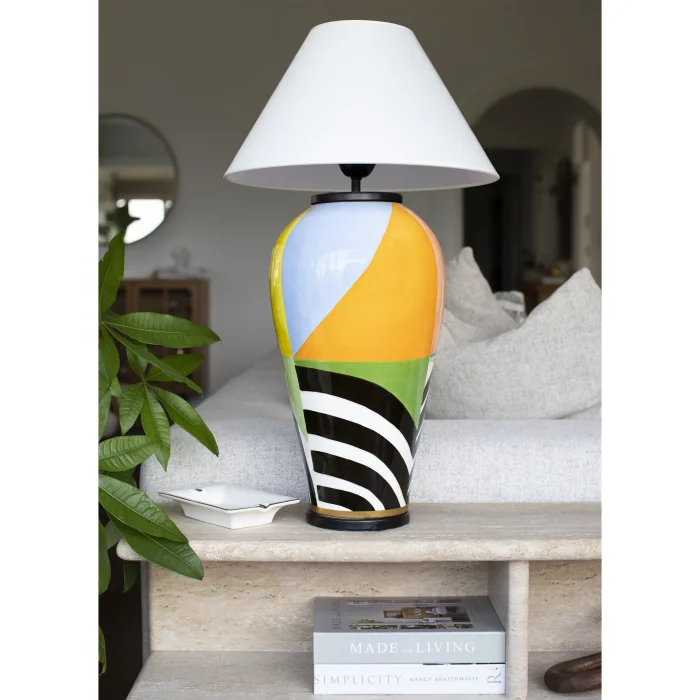 Diameter: 40 cm. Height: 75 cm. Measurements may vary slightly in all handmade products. Body: Ceramic. Lampshade options: White-Sand beige-Black