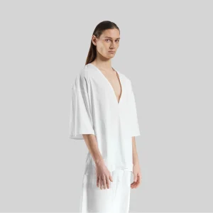 White 100% Cotton Deep V Neck Oversized Unisex T-shirt