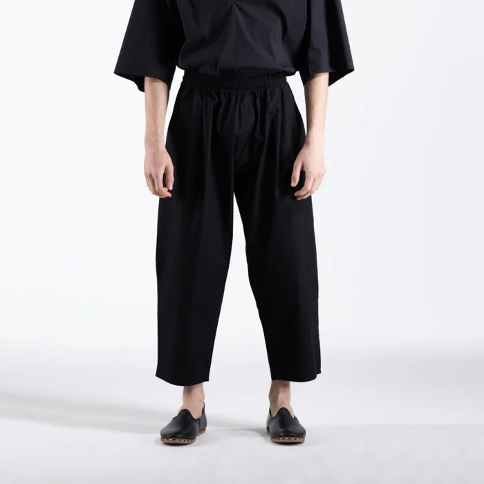 Black 100% Cotton Elastic Waist Oversized Unisex Trousers