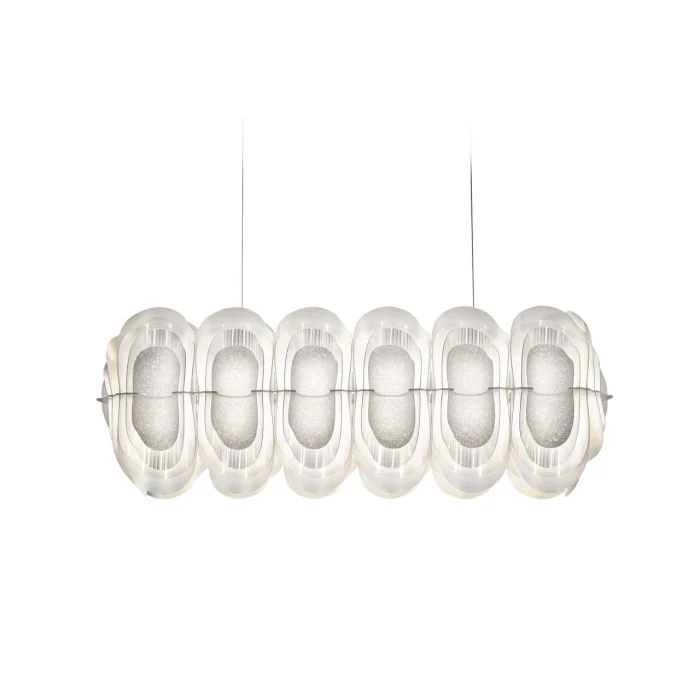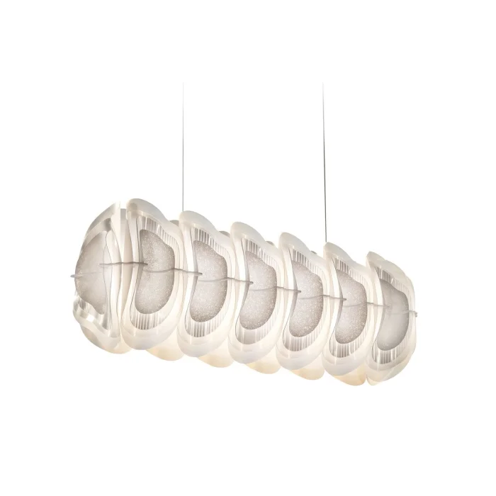 Fiordlys is inspired by the meandering waves of the northern lights and the movement of the Scandinavian cliffs. In a metropolitan environment where speed and chaos change human balances, Fiordlys brings the cool and calm breeze of nature to the center of the home. Fiordlys is a highly customizable product in terms of surface options. Designed as two pendant versions, round and linear, and a wall sconce version, the product is available in three different finishes: White, Gold and Silver.