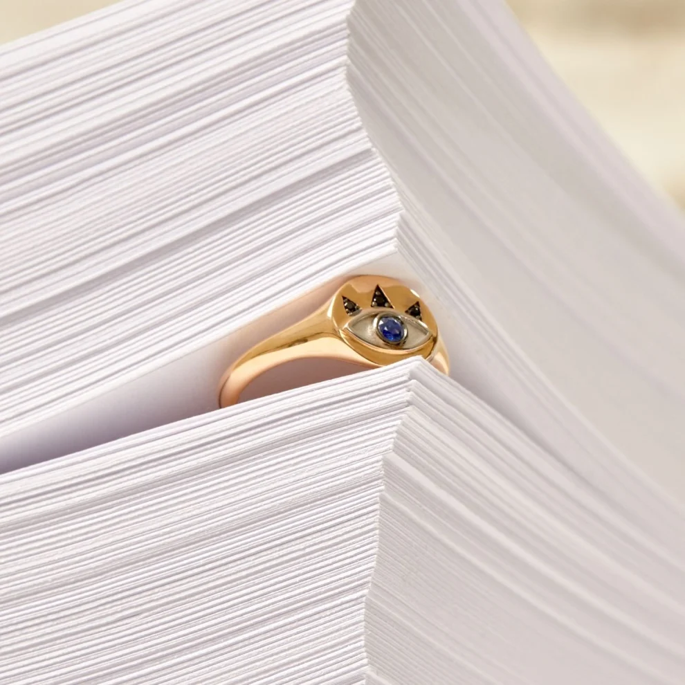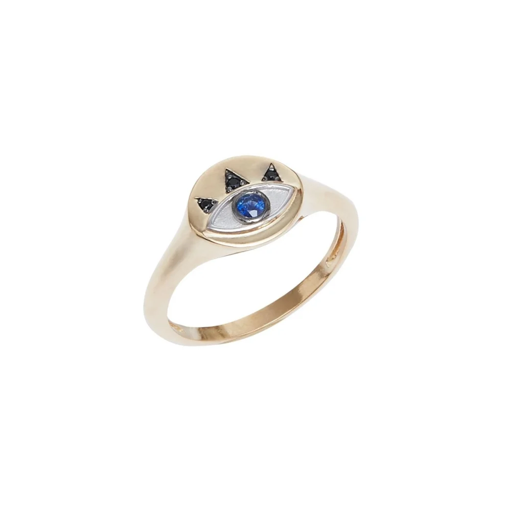 14k Micron Gold Plated on 925 Silver. Sapphire 0.06ct, Black Zircon. Silver Weight: 2.15 g. The product is certified.