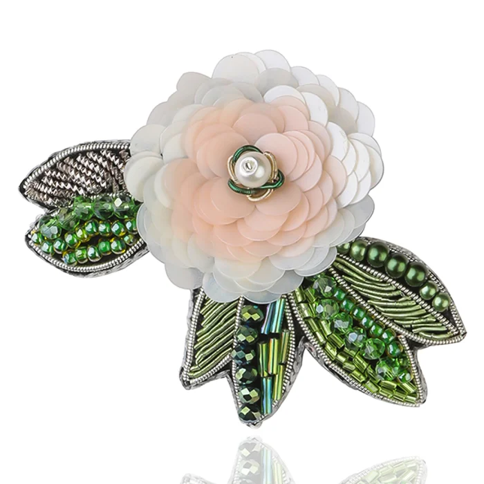 It is a leather brooch embroidered with Italian sequins, asfor brand crystal stones, Czech beads, miyuki beads, pave india and dmc french embroidery. It is completely handcrafted. It will be sent in a special box. Dimensions: 8x6 cm